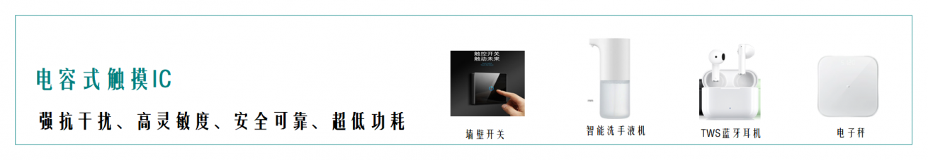 CT8333-X | 單鍵系列 | 2.4~5.5V | DFN1*1 - 4L /DFN2*2 - 6L/ SOT23 - 6L | 多種封裝、低功耗單通道電容式觸摸檢測(cè)芯片 | 廣泛應(yīng)用于觸控面板、益智玩具、燈光控制等 消費(fèi)類電子產(chǎn)品上 | - | - | - | - | - | - | - | - | - | - | - | - | - | - | - | - | - | - | - | - | - | - | 下載 |