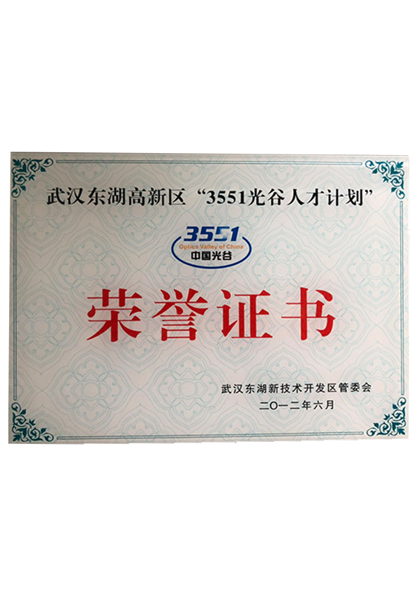 3551 Optics Valley Talent Program Certificate (2012)