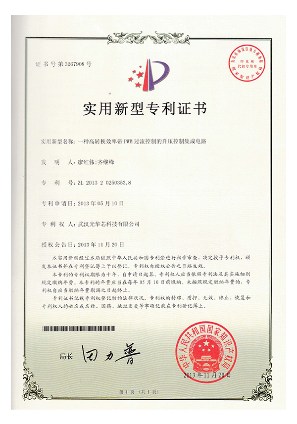 Utility model patent certificate