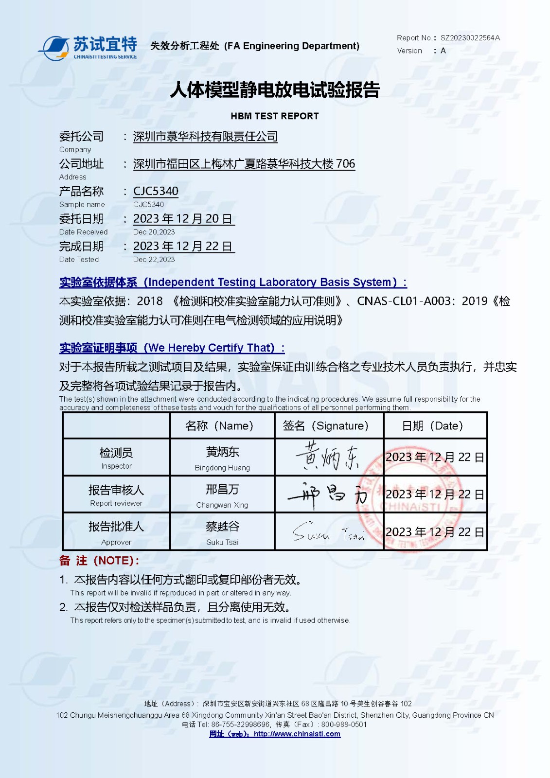 CJC5340_ESD測試報告