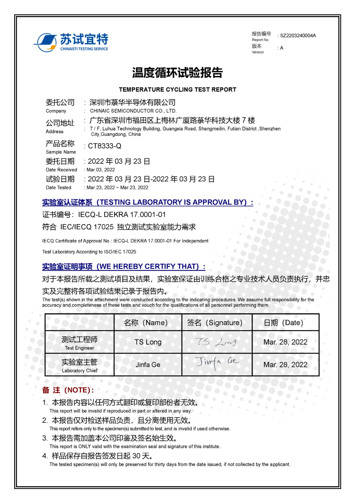 CT8333-Q DFN4(極限測(cè)試)_溫度循環(huán)試驗(yàn)報(bào)告